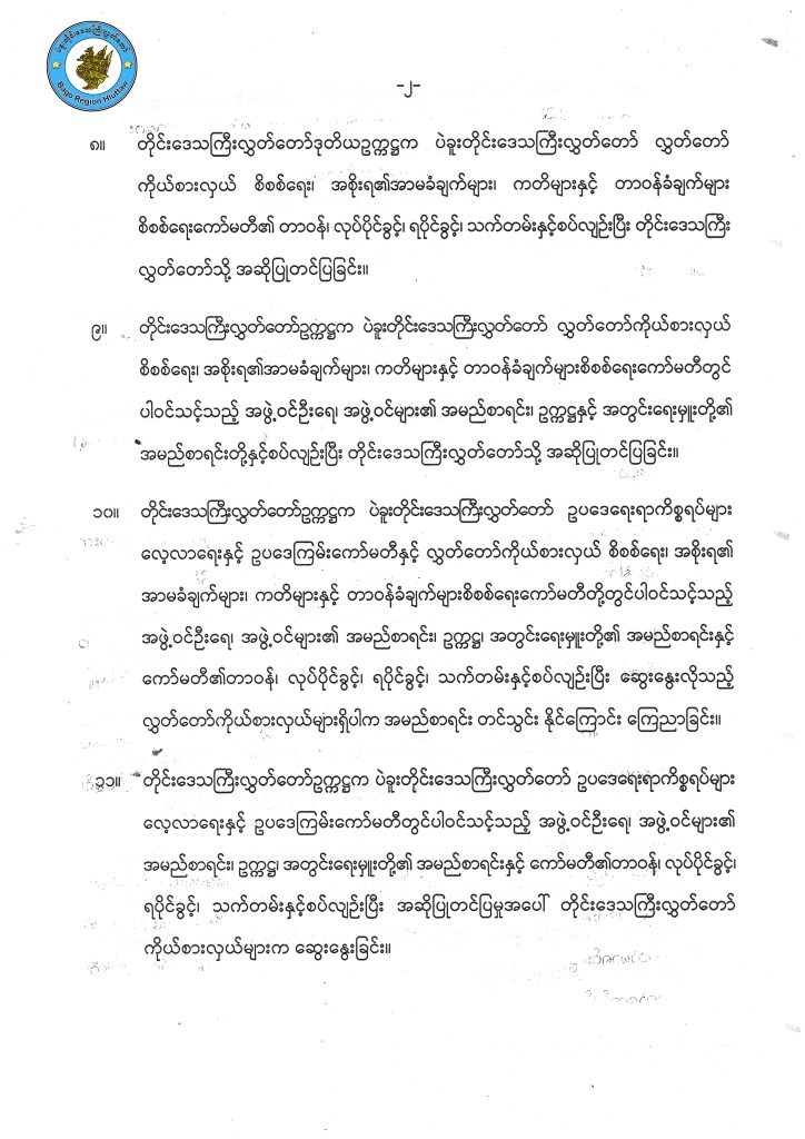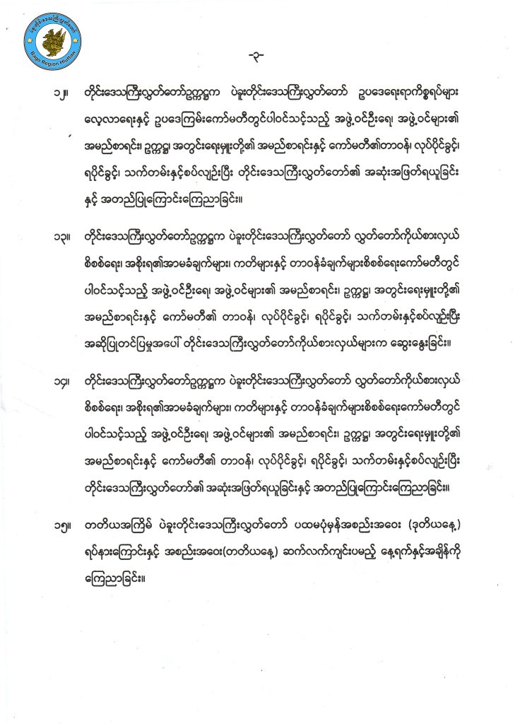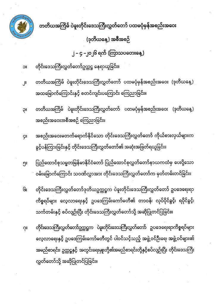 တတိယအကြိမ်ပဲခူးတိုင်းဒေသကြီးလွှတ်တော် ပထမပုံမှန်အစည်းအဝေး (ဒုတိယနေ့) အခမ်းအနားအစီအစဉ်