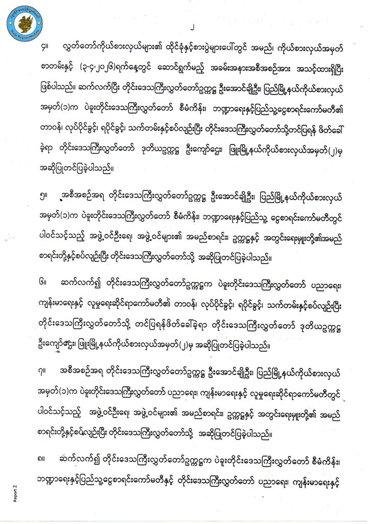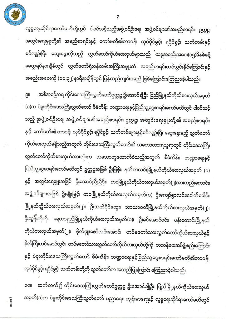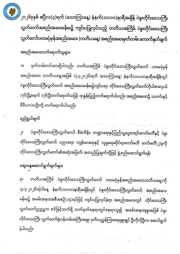 တတိယအကြိမ် ပဲခူးတိုင်းဒေသကြီးလွှတ်တော် ပထမပုံမှန်အစည်းအဝေး (တတိယနေ့) အစည်းအဝေးမှတ်တမ်းကောက်နုတ်ချက်