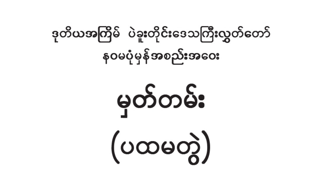 ဒုတိယအကြိမ် ပဲခူးတိုင်းဒေသကြီးလွှတ်တော် (၁၁) ကြိမ်မြောက်ပုံမှန်အစည်းအဝေး(ဒုတိယတွဲ) အားအပြည့်အစုံဝင်ရောက်ဖတ်ရှုပြီး PDF File ဖြင့် Download ပြုလုပ်နိုင်ပါသည်။