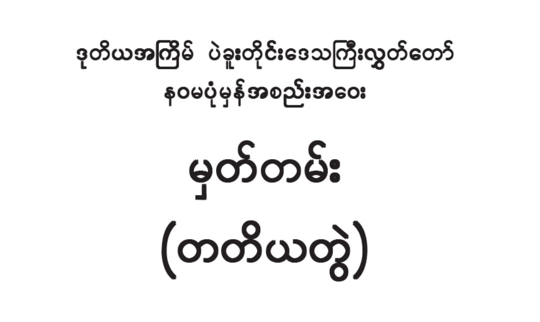 ဒုတိယအကြိမ် ပဲခူးတိုင်းဒေသကြီးလွှတ်တော် (၁၁) ကြိမ်မြောက်ပုံမှန်အစည်းအဝေး(တတိယတွဲ) အားအပြည့်အစုံဝင်ရောက်ဖတ်ရှုပြီး PDF File ဖြင့် Download ပြုလုပ်နိုင်ပါသည်။